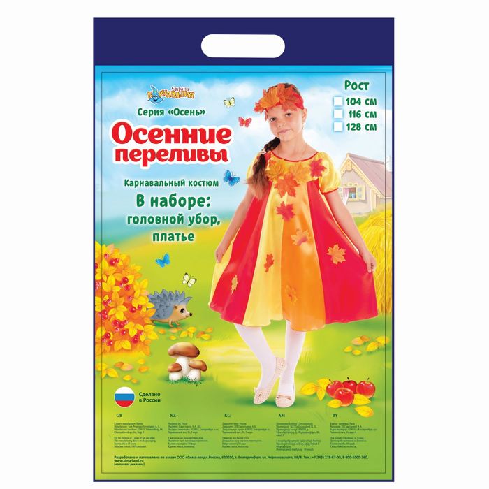 Осень — самое живописное время года! Примерьте всю палитру цветов этой поры: карнавальный костюм «Осенние переливы» погрузит вас в красочную атмосферу листопада в красно-жёлтых тонах.