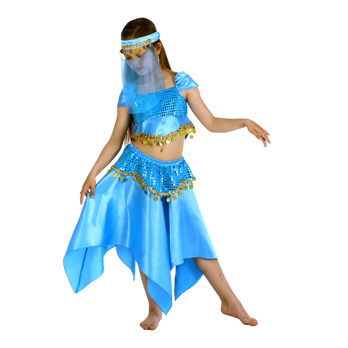 Карнавальный костюм "Восточная красавица. Лейла", повязка, топ, юбка, цвет голубой, р-р 32, рост 122-128 см