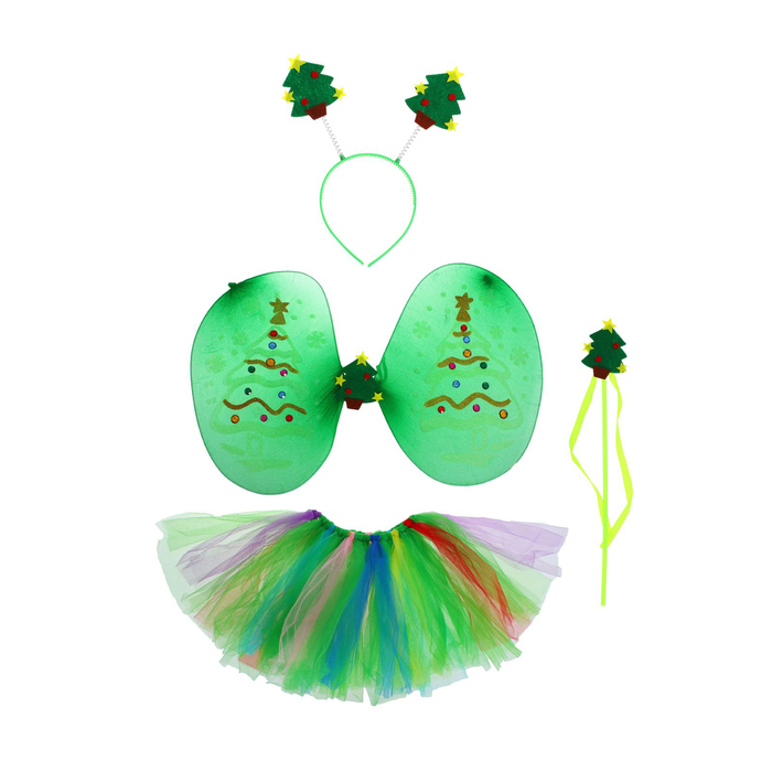 Карнавальный набор "Ёлочка", 4 предмета: ободок, жезл, крылья, юбка, 3-4 года