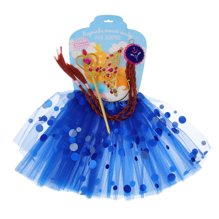 Карнавальный набор "Кокетка" 4 предмета: корона, жезл, коса, юбка 3-4 года