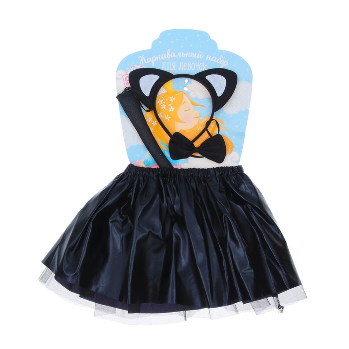 Карнавальный набор "Кошечка" 4 предмета: юбка, ободок, бабочка, хвост 3-4 года