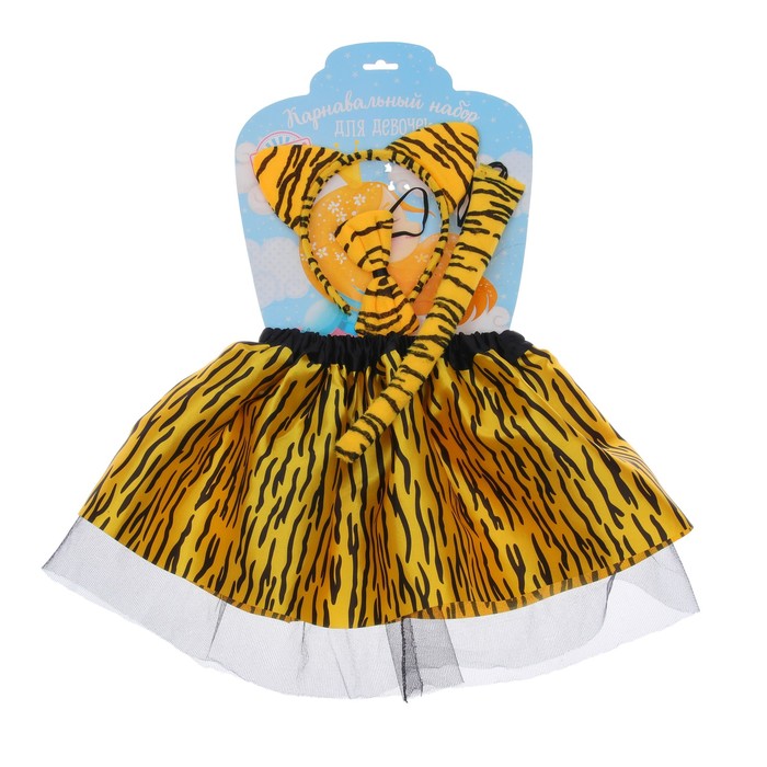 Карнавальный набор "Тигрица" 4 предмета: юбка, ободок, бабочка, хвост 3-4 года
