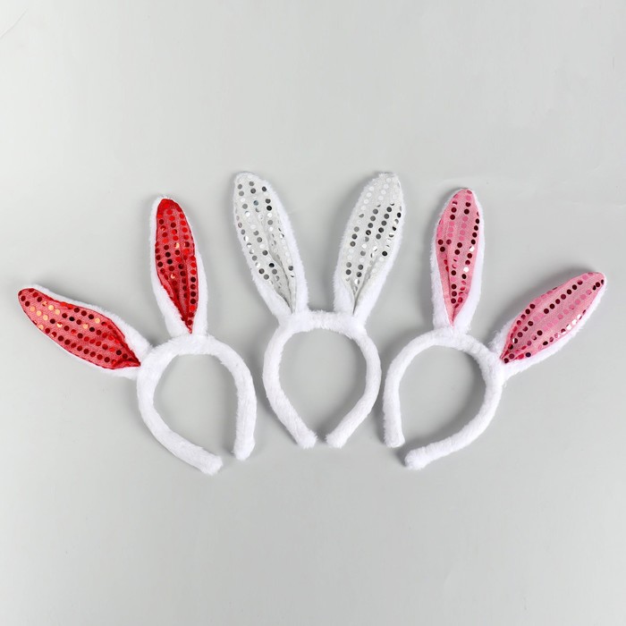 Карнавальный ободок "Заячьи ушки" с пайетками, цвета МИКС