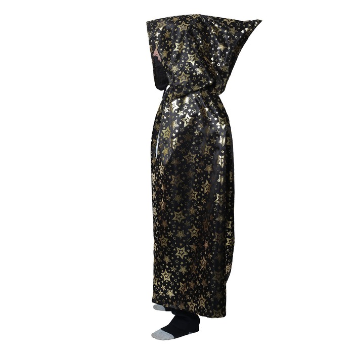 Карнавальный плащ черный с золотыми звездами с капюшоном,маска,атлас,длина 85см