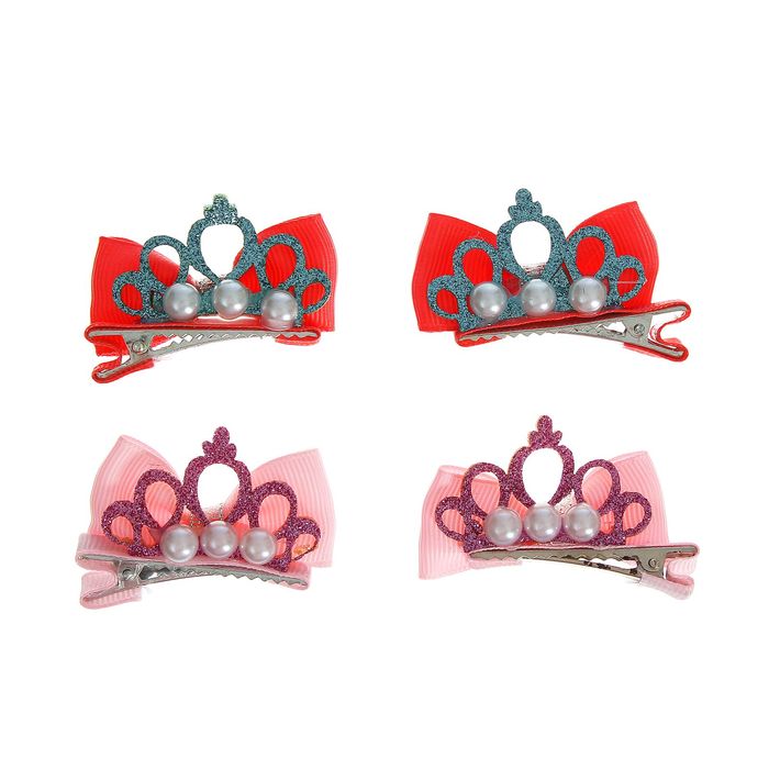 Карнавальный зажим "Бантик с короной", набор 2 шт., цвета МИКС