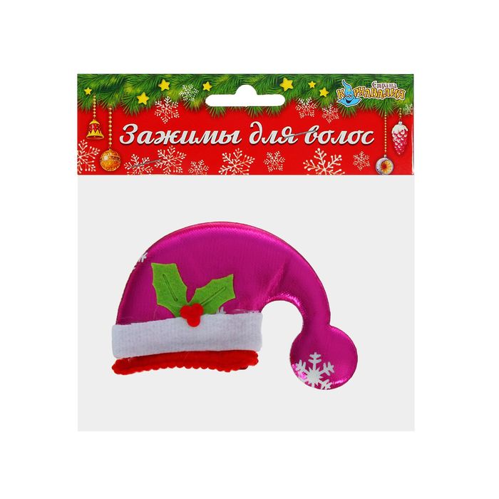 Карнавальный зажим "Колпак", набор 2 шт. сделает образ по-настоящему новогодним! Эффектный аксессуар в виде самой популярной зимней шапки за считанные секунды добавит причёске стиля и поможет создать карнавальный облик. Такая яркая деталь станет отличным решением для любых снежных вечеринок.