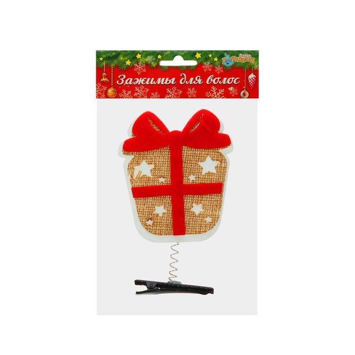 Карнавальный зажим "Подарок", набор 2 шт. сделает образ по-настоящему новогодним! Эффектный аксессуар в виде праздничных презентов на пружинке за считанные секунды преобразит причёску и поможет создать карнавальный облик. Такой яркий атрибут станет отличным решением для любых зимних вечеринок.