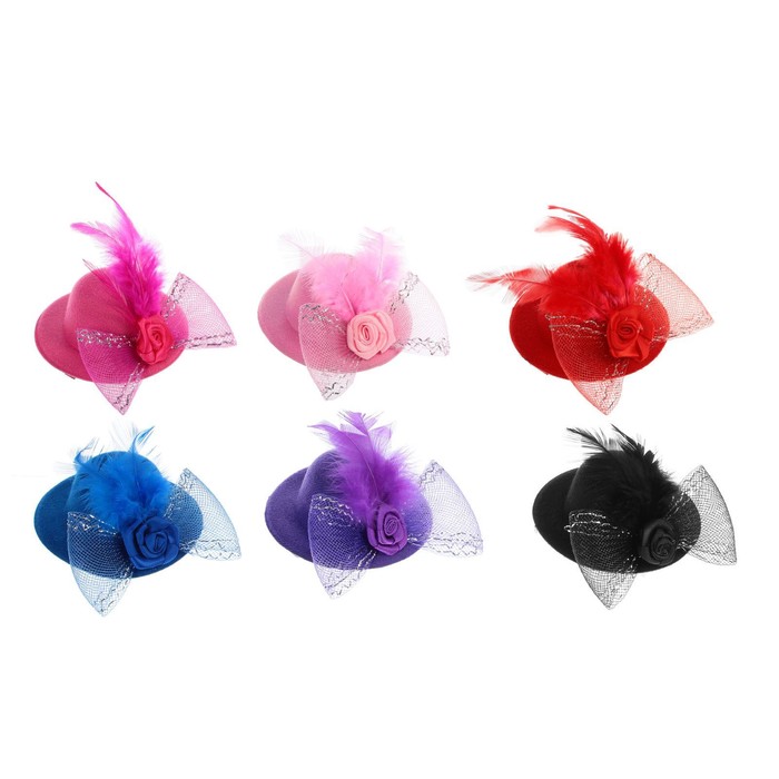 Карнавальный зажим шляпка "Розочка" с перьями, цвета МИКС станет изящным дополнением вашей причёски. Эффектная деталь за считаные секунды добавит облику торжественности и украсит ваши локоны. Такая креативная изюминка будет отлично сочетаться с любым костюмом на вечеринках или торжествах. Чтобы сделать образ запоминающимся, достаточно одного аксессуара!