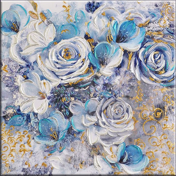 Картина на оргстекле со стразами "Голубое изобилие" розы и крокусы