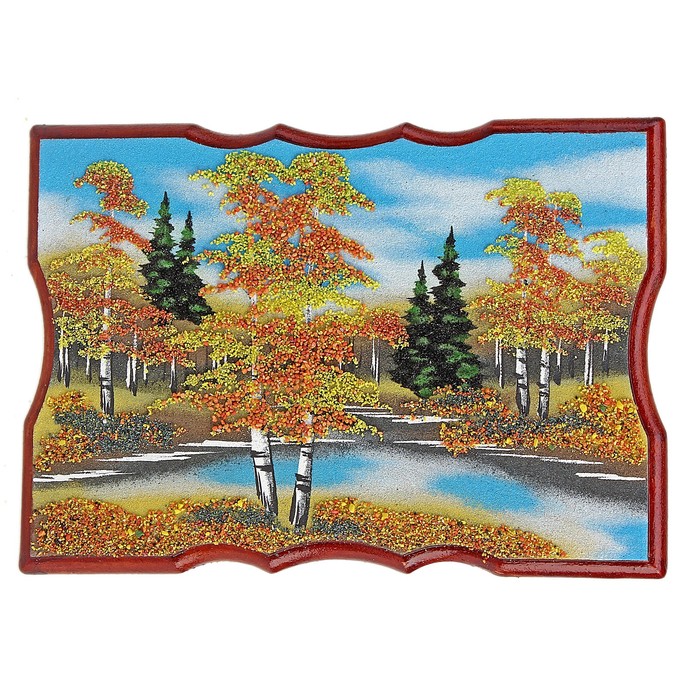Картина "Осень" Фанера прямоугольная средняя №2-3 15,5х22,5х2 см каменная крошка станет замечательным подарком спортсменам, врачам и фармацевтам, юристам и бизнесменам, учащимся и обучающим. На лицевой поверхности изделия допускаются прожилки и полосы, не ухудшающие декоративные свойства. На обороте допускаются незначительная пористость, волнистость, следы инструмента.