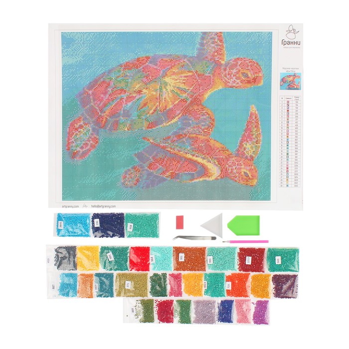 Картина стразами "Морские черепахи" отлично подойдёт для гармоничного развития творческих способностей и организации увлекательного совместного досуга. Создавайте, экспериментируйте и украшайте дом оригинальными вещами, сделанными своими руками!