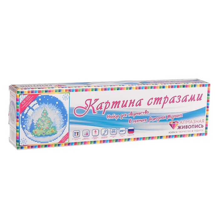 Картина стразами "Новогодний шарик с ёлкой" 15х15 см