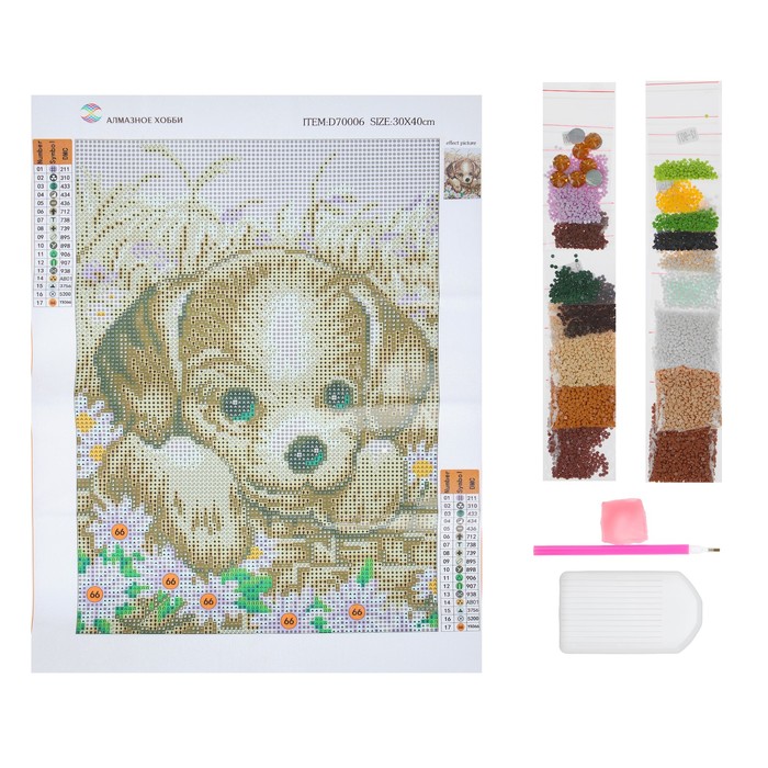 Картина стразами "Щенок и ромашки"