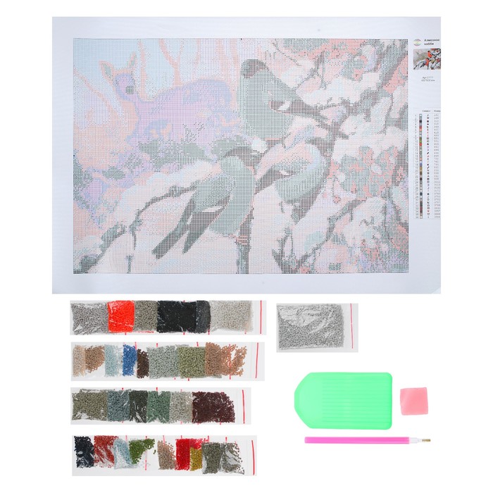 Картина стразами "Три снегиря и лань"