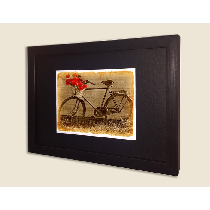 Картина в дизайнерской раме "Винтажный велосипед с красными цветами" серии Black, 40х30см