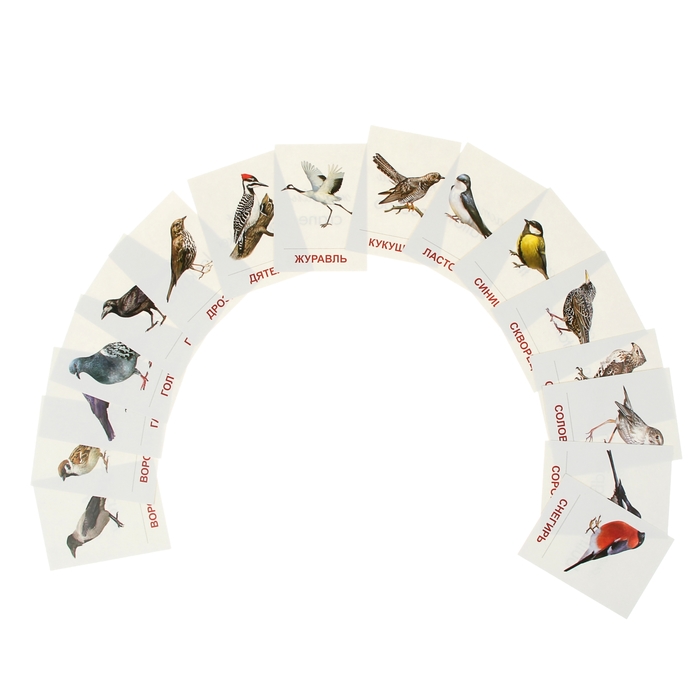 Карточки обучающие "Птицы России" 16 шт. 6,3 х 8,7 см.
