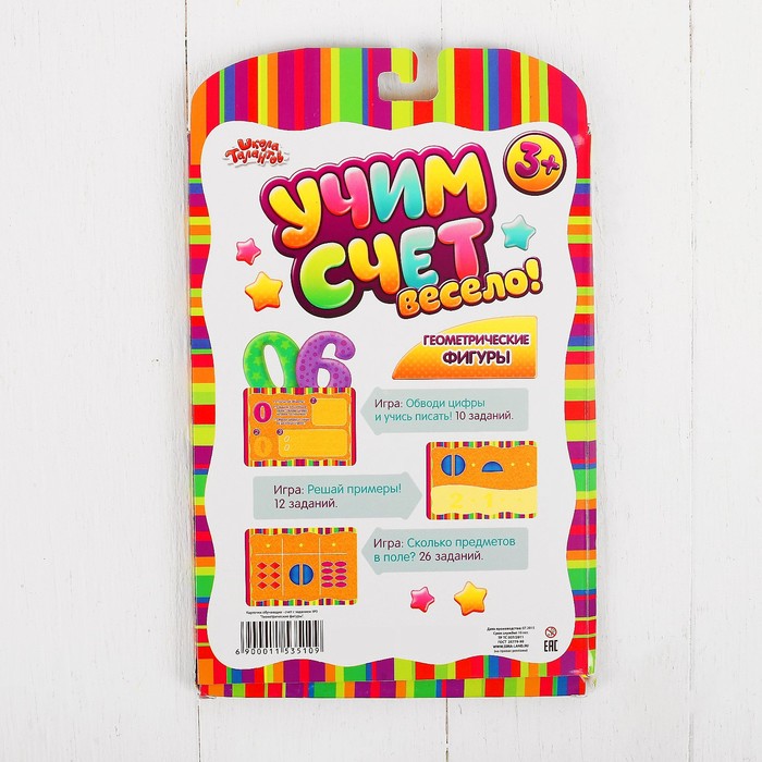 Занимательные игры «Обводи цифры и учись писать», «Решай примеры», «Сколько предметов в поле?» увлекут ребенка и пробудят интерес к знаниям. Учитесь считать, выполняйте задания, составляйте примеры из комплекта или же пишите на карточках самостоятельно.