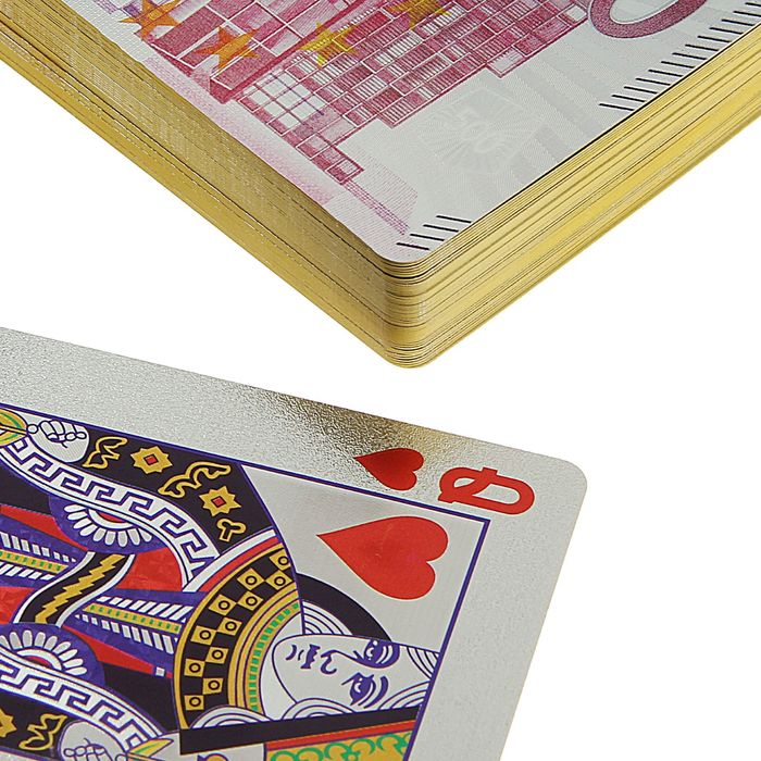 Выбирайте карты игральные пластиковые "500 евро", 54 шт., 30 мкм, 8,7 × 5,7 см, цветные + под серебро и наслаждайтесь любимой игрой.
