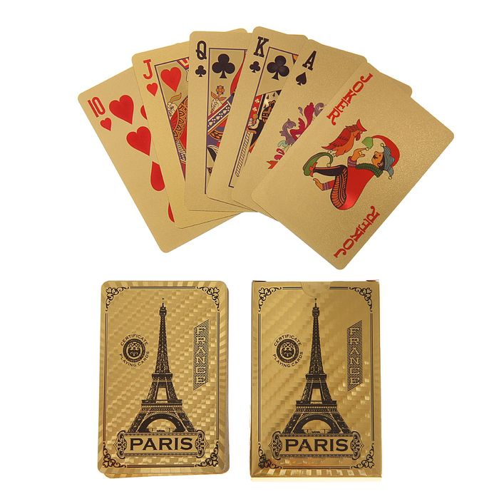 Выбирайте карты игральные пластиковые "Эйфелева башня", 54 шт., 35 мкм, 8,7 × 5,6 см, золотистые и наслаждайтесь любимой игрой.