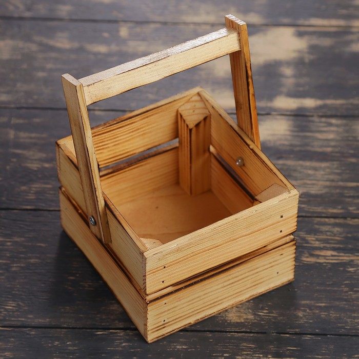 Кашпо флористическое из двух реек, складная деревянная ручка, лакированное, 11х12х9см