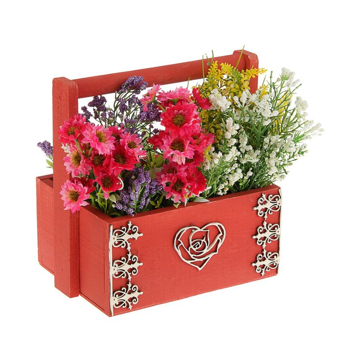 Кашпо флористическое "Любовь", красное, с ручкой, 20х16х9,5см