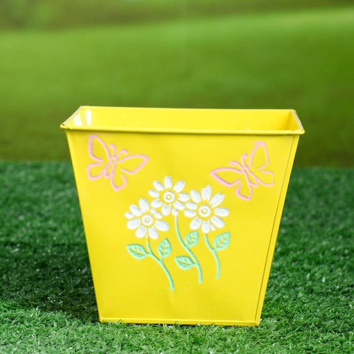 Кашпо оцинкованное "Цветочки-бабочки" квадратное, микс