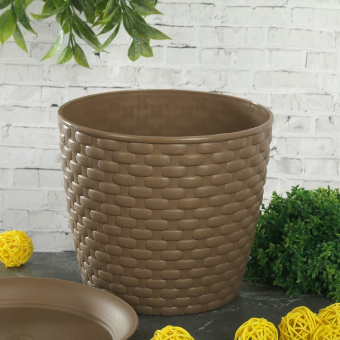 Кашпо с поддоном 2 л "Ротанг", цвет бежевый