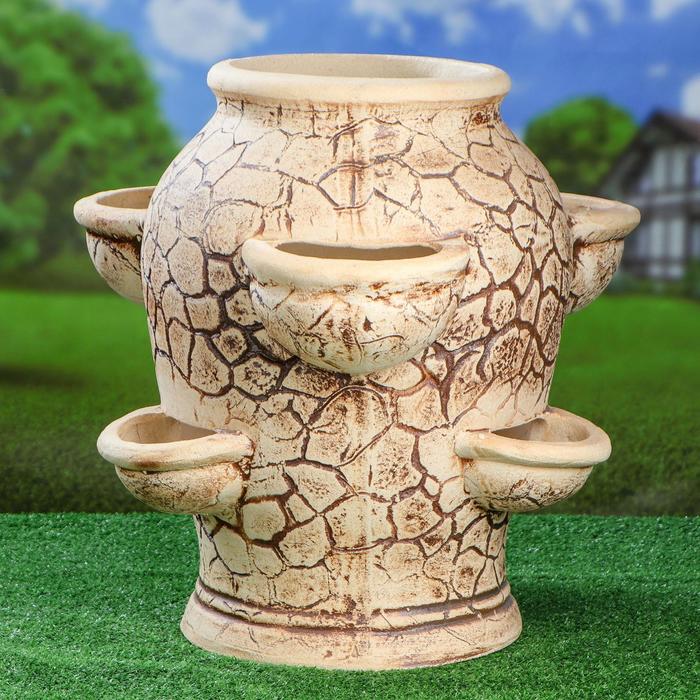 Горшок «Земляничница» - настоящая находка для душевных садоводов. Он объединил в себе практичность и красоту, став замечательным предметом декора, также подходящим для выращивания земляники в маленьких боковых чашах. Изделие выполнено исключительно из природных материалов, а именно – шамотной глины, которая делает его: