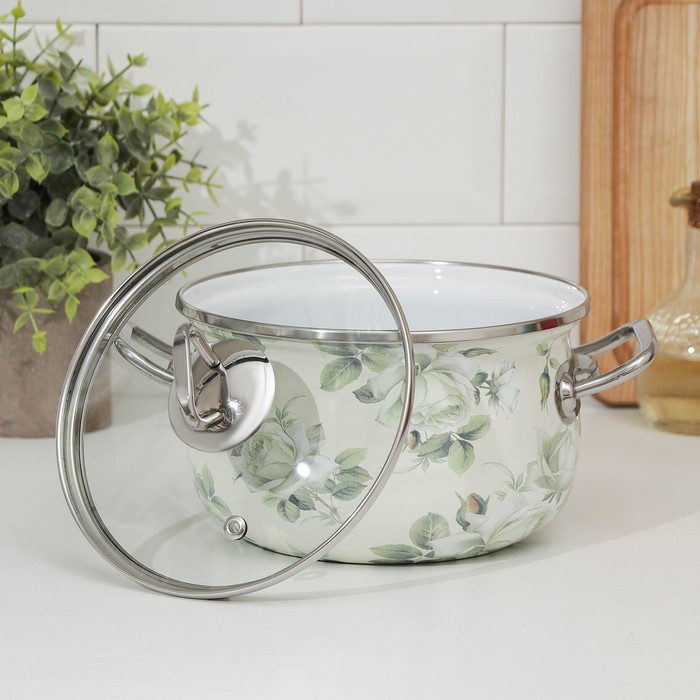 Кастрюля 2,1 л "Белая роза", стеклянная крышка