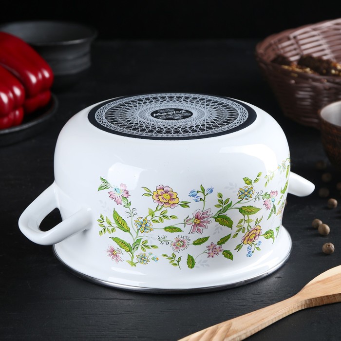 Кастрюля 2 л "Полевые цветы", 16 см, эмалированная крышка