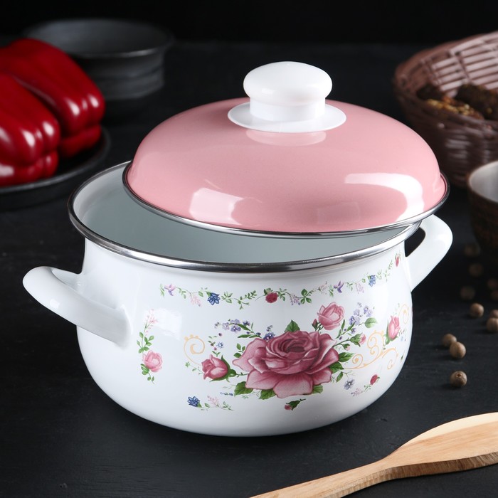 Кастрюля 2 л "Розовый букет", 16 см, эмалированная крышка