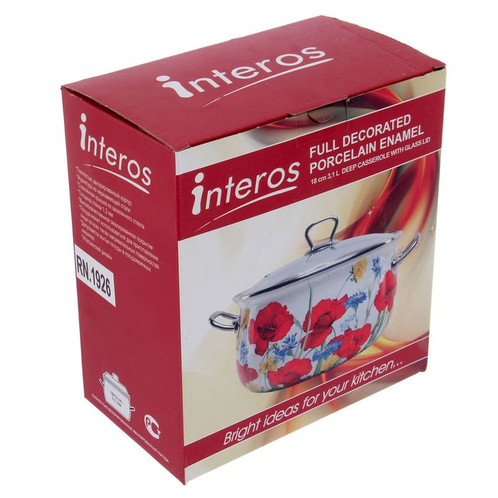 Эмалированная кастрюля Interos из качественной стали, покрытой двухслойной стеклокерамической эмалью, отлично подходит для приготовления и хранения различных блюд.