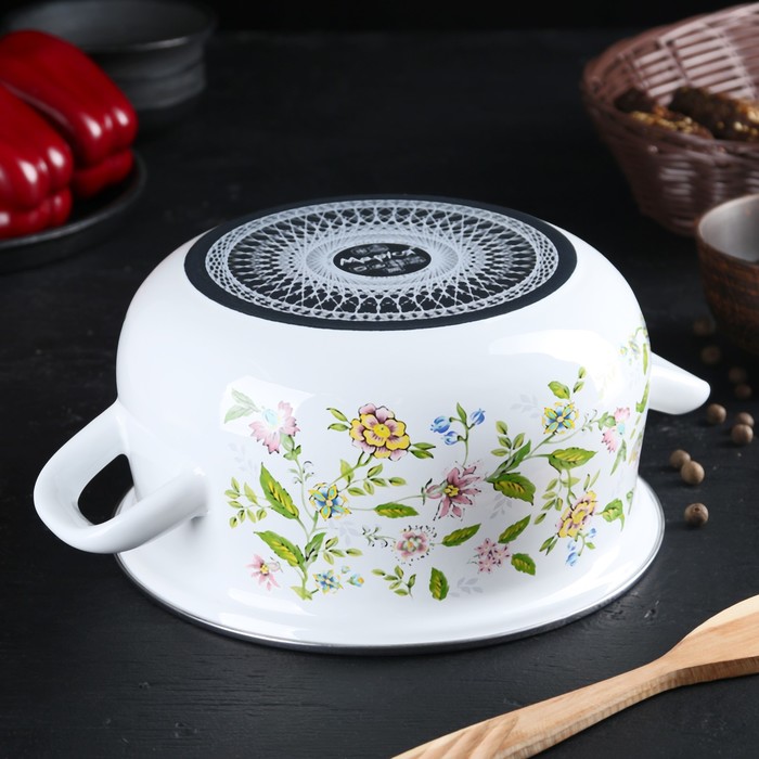 Кастрюля 3 л "Полевые цветы", 18 см, эмалированная крышка