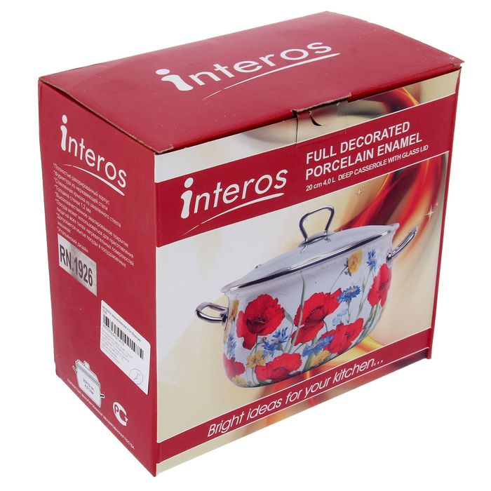 Эмалированная кастрюля Interos из качественной стали, покрытой двухслойной стеклокерамической эмалью, отлично подходит для приготовления и хранения различных блюд.