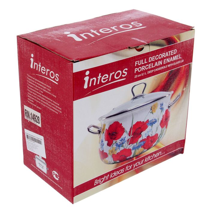 Эмалированная кастрюля Interos из качественной стали, покрытой двухслойной стеклокерамической эмалью, отлично подходит для приготовления и хранения различных блюд.