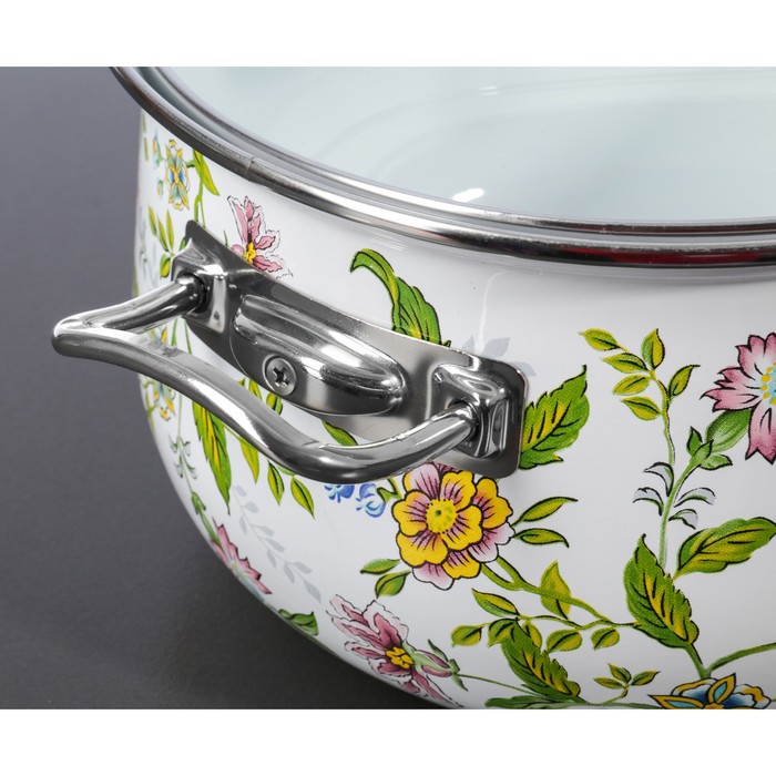Кастрюля 5 л "Полевые цветы", 22 см, стеклянная крышка