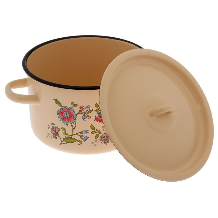 Кастрюля цилиндрическая 2,9 л "Луговые цветы", цвет кремовый