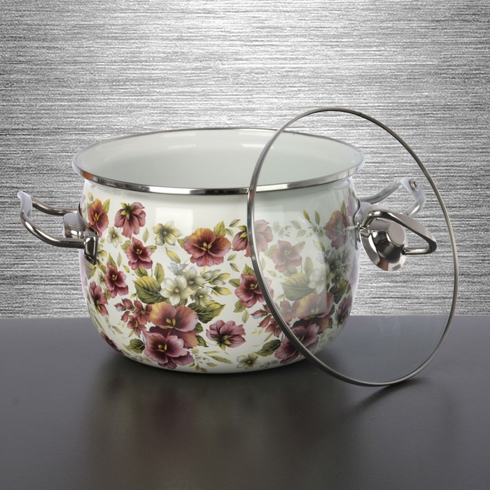 Кастрюля сферическая 3,5 л "Джулия", стеклянная крышка, нержавеющий ободок