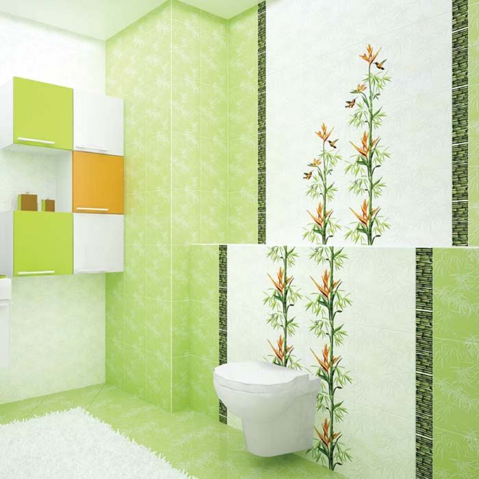Основные цвета коллекции Jungle — зелёный и белый. Эти оттенки превосходно гармонируют между собой и отлично сочетаются с другими предметами интерьера. Коллекция состоит из глазурованного керамогранита, вставки и бордюра с изображениями бамбука. Соберите все декоративные элементы данной серии для создания уютной атмосферы.