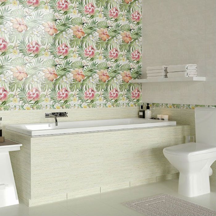 Основные цвета коллекции Liana — зелёный и бежевый. Эти оттенки превосходно гармонируют между собой и отлично сочетаются с другими предметами интерьера. Коллекция состоит из глазурованного керамогранита, облицовочной плитки, вставки и бордюра с изображением цветов. Соберите все декоративные элементы данной серии для создания уютной атмосферы.