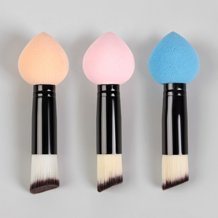 Кисть для макияжа/тонального крема, со спонжем, двусторонняя, скошенная, цвет МИКС