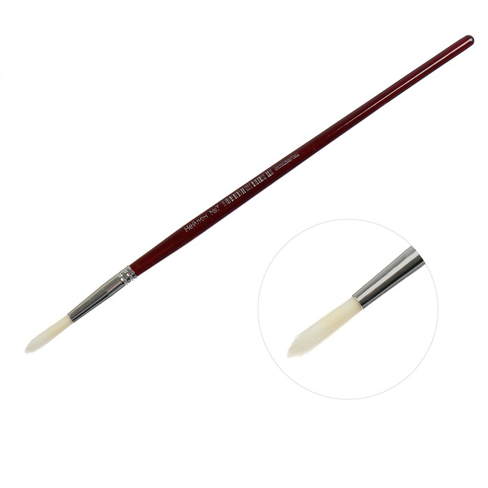 Кисть нейлон круглая №7 ручка лакированная коричневая 22см
