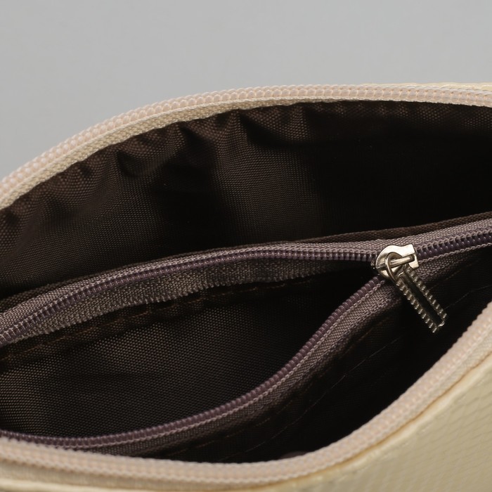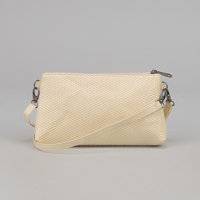 Клатч, 1 отдел с перегородкой на молнии, ручка, длинный ремень, цвет молочный