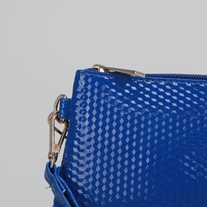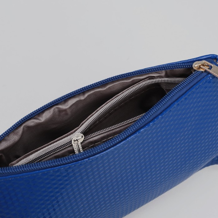 Клатч, 1 отдел с перегородкой на молнии, ручка, длинный ремень, цвет синий