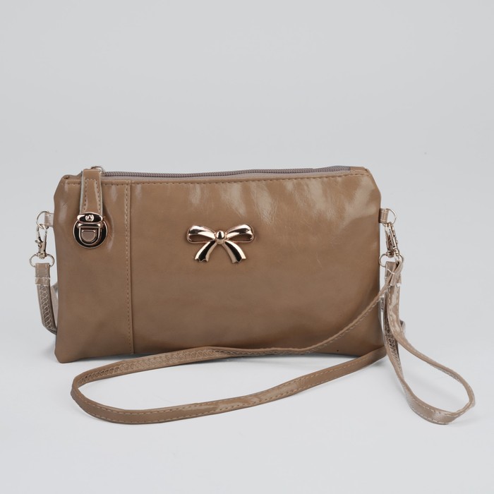 Клатч "Элегантность", 1 отдел с перегородкой, наружный карман, ручка, длинный ремень, цвет бежевый