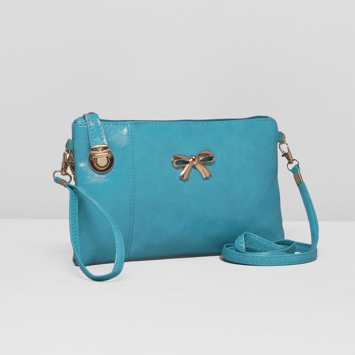 Клатч "Элегантность", 1 отдел с перегородкой, наружный карман, ручка, длинный ремень, цвет бирюзовый