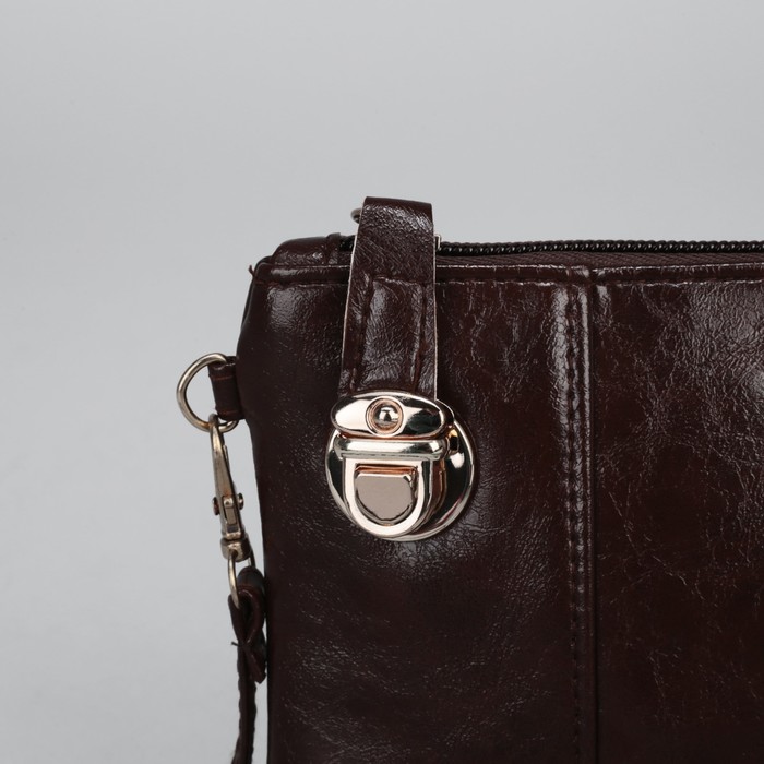 Клатч "Элегантность", 1 отдел с перегородкой, наружный карман, ручка, длинный ремень, цвет коричневый