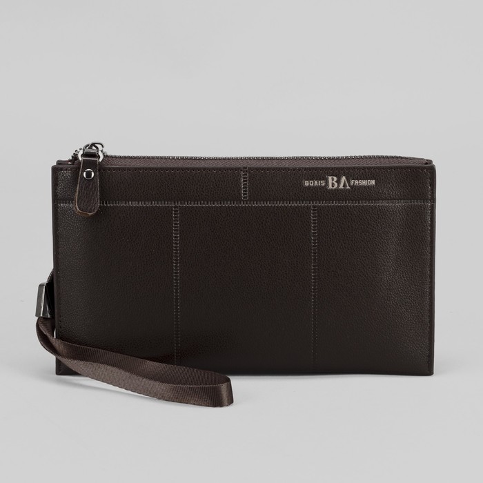 Клатч мужской, 2 отдела, для карт, на молнии, ручка, цвет кофе