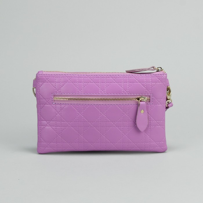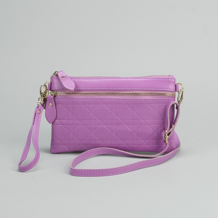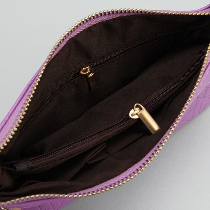 Клатч на молнии, 1 отдел с перегородкой, 1 наружный карман, с ручкой, длинный ремень, цвет сиреневый
