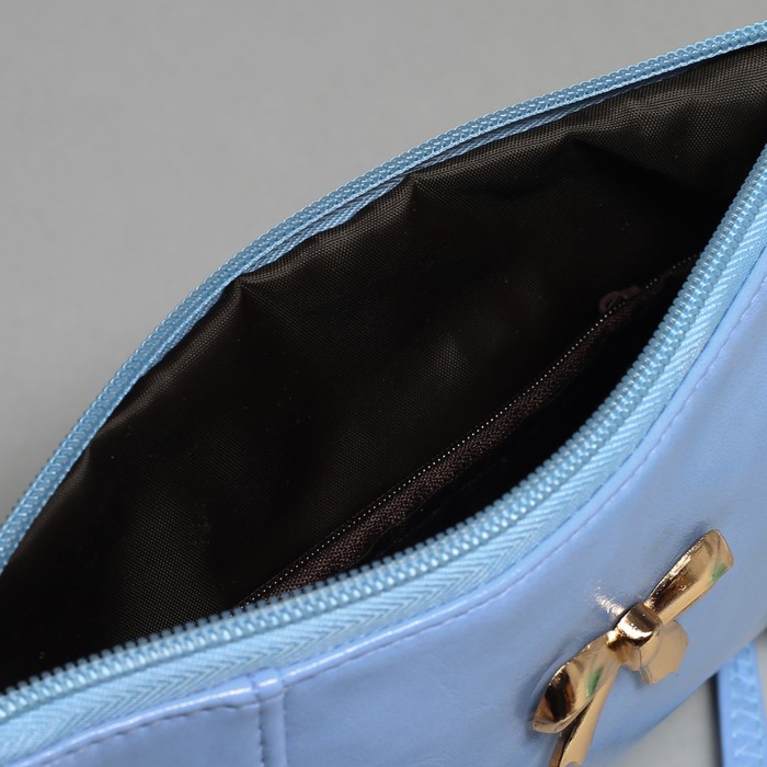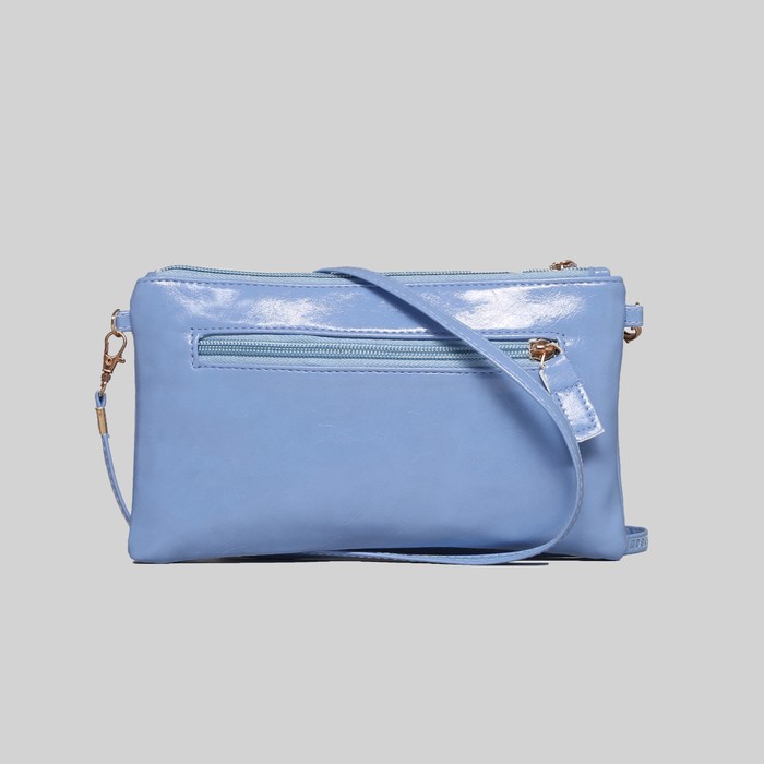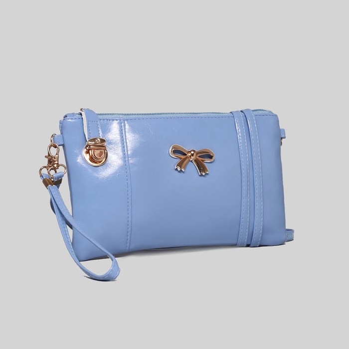 Клатч на молнии, 1 отдел с перегородкой, наружный карман, ручка, длинный ремень, цвет голубой